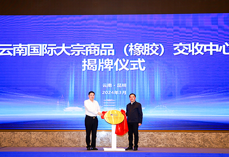 3月29日下午,云南国际大宗商品(橡胶)交收中心揭牌仪式在昆明举行。云南省委常委、昆明市委书记刘洪建,物...