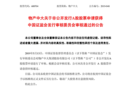 2019年5月14日,中文av (600704.SH)发布公告,中国证监会发行审核委员会对公司非公开发行A股股票申请进...