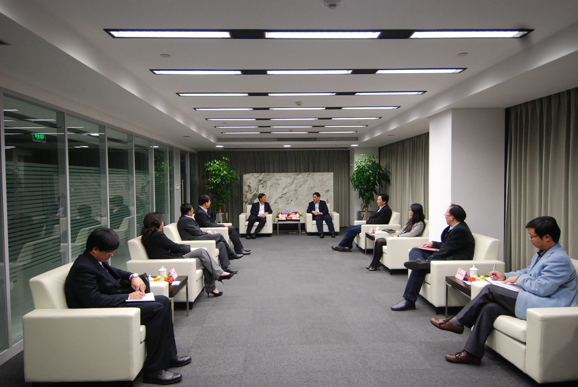 11月21日下午,胡江潮董事长在集团总部会见了来访的中国光大银行总行刘珺副行长,双方就进一步加强金融合作交换了意见。胡董事长向客人简要介绍了集团“十二五”战略规划及以电子商务、连锁分销、配供配送等为核心竞争力的商业模式,并指出,作为“世界500强”企业,浙江物产要充分利用综合融资成本远低于社会平均水平的优势,以“产融结合”理念为指导大力发展金融产业,支撑集团经营业态向供应链服务集成转型升级。他表示,浙江物产与光大银行有良好的合作基础,希望今后能开展更加紧密的合作,在业务上更贴近,在创新上更前沿。