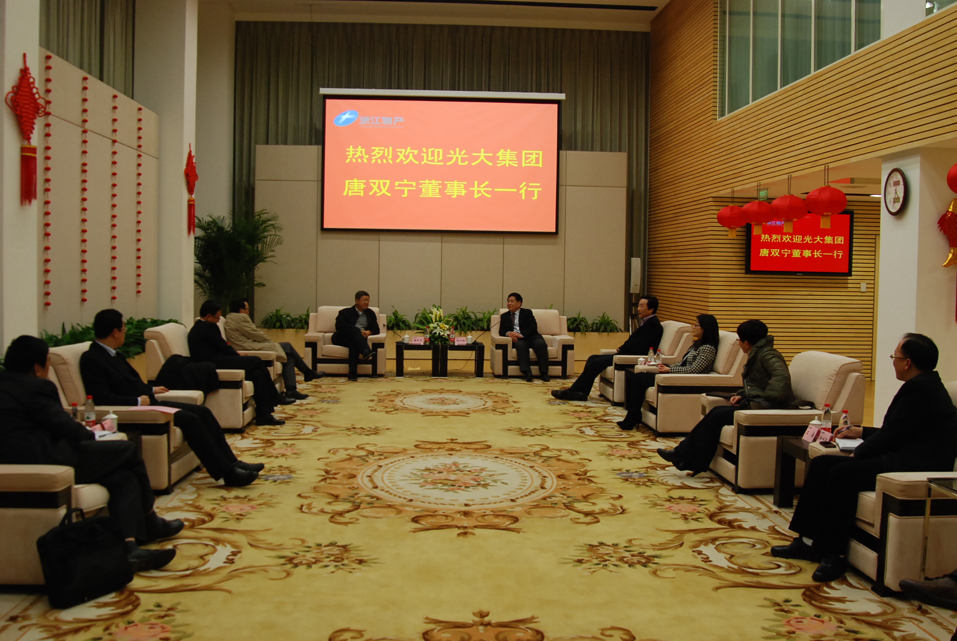 新年伊始,胡江潮董事长在集团总部会见了来访的光大集团董事长唐双宁、战略部总经理吴富林和光大银行杭州分行行长郑学筠等一行。集团公司隋剑光总经理、资金运营管理中心郑迎节总监等参加了会见。
