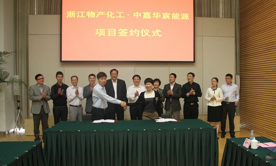 4月18日,浙江物产化工集团有限公司与中嘉华宸能源有限公司股权转让签约仪式在我集团总部举行。物产化工董事长庞村与华宸能源董事长蔡成化代表双方签字。按照协议,物产化工成功受让华宸能源旗下全资子公司——嘉兴中嘉石化物流有限公司51%的股权。4月19日,嘉兴中嘉石化物流有限公司正式更名为浙江物产化工港储有限公司。此举标志着物产化工初步形成了贸易、实业、物流3大业务结构,并将有力地推进公司液化业务的转型升级。