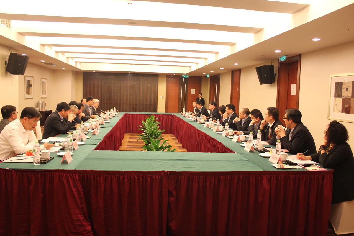 王挺革主持对接会,周冠女介绍了集团成立以来的发展情况,“一体两翼”的发展战略,主要经营业态、经营领域、经营板块以及经营特点。沈光明介绍集团供应链集成服务的成功经验、经营模式和盈利模式以及正在和将要拓展合作的主要领域,包括建材统采平台、绿色化工以及电子商务等。物产中拓袁仁军董事长重点介绍了物产中拓如何拓展中西部商业网点以及开展钢材电子商务的经验模式与服务优势。物产金属缪雷鸣总经理介绍了公司的成功改制以及当前转型升级的主要措施。