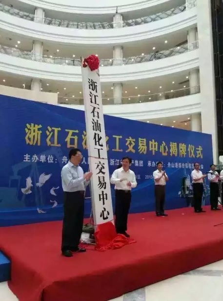 省政府副秘书长陆建强、舟山市长周江勇、中国石油流通协会会长邸建凯、集团董事长王挺革、总经理周冠女、党委副书记宋宏炯等领导出席揭牌仪式。仪式上,陆建强宣读《浙江省人民政府办公厅关于设立浙江石油化工交易中心有限公司的复函》,周冠女总经理致辞,周江勇、王挺革共同为交易中心进行揭牌。