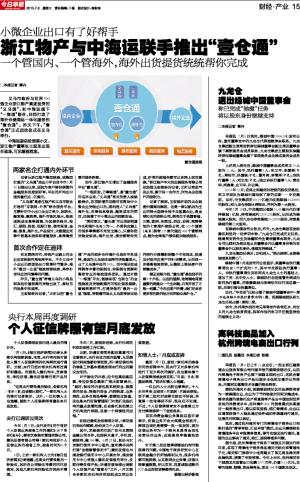 浙江物产与中海运联手推出“壹仓通”