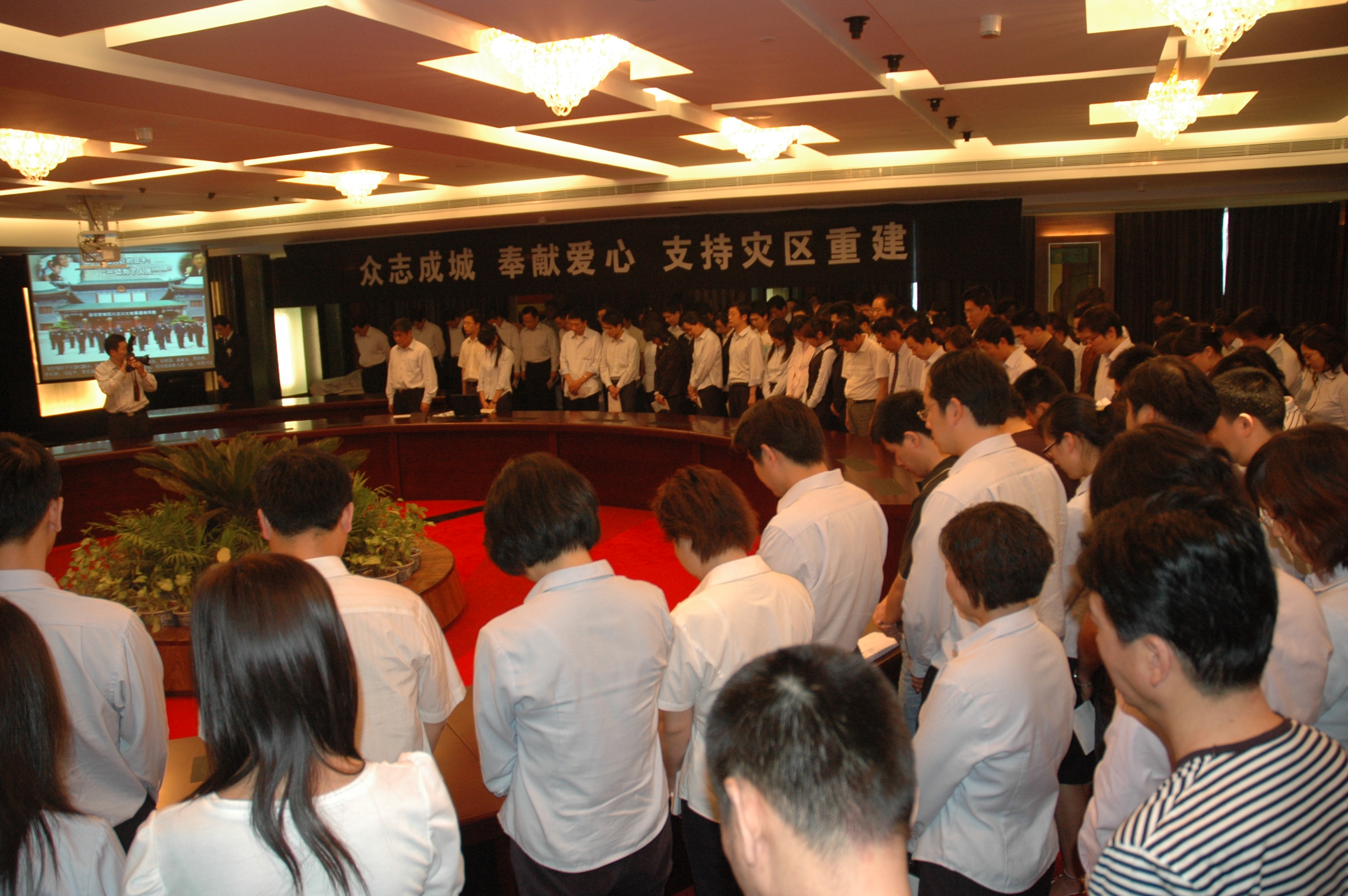 15日上午,捐款通知一出,物产国际的员工们都不约而同地放下手头的工作,纷纷前往捐款。镜头下的员工显得非常羞涩,“不要拍我们,只是为灾区人民尽一点心意”,“希望他们能坚强地战胜这场灾难”。很多同事,得知灾区急需帐蓬,特意从家中带来,一并放到捐款箱旁。还有许多员工自发组织前往献血点。“我们还想尽量多做点”,员工们说。