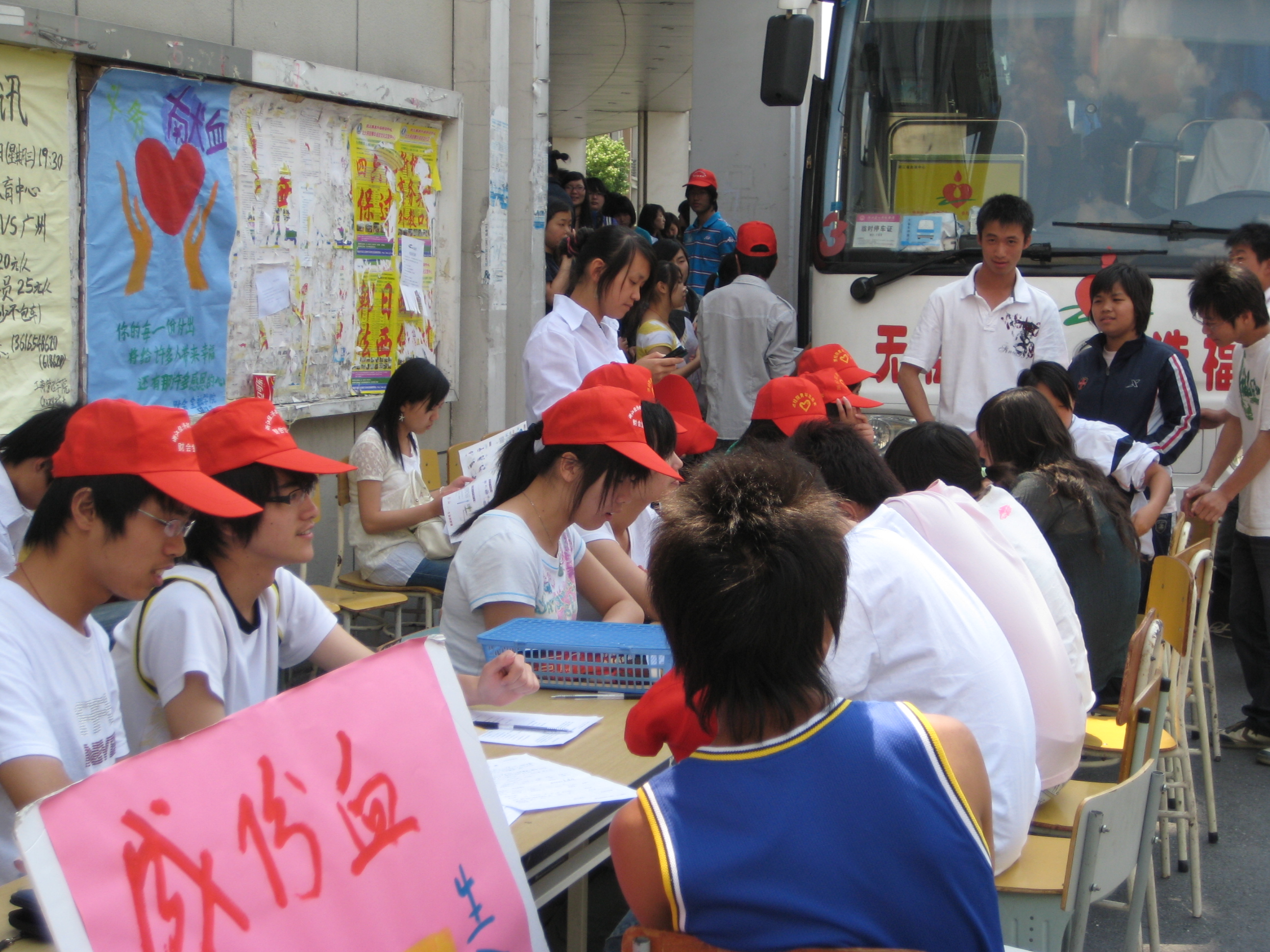 5月13日,省血液中心的采血车赶到时,学院食堂门口已排起了长队。献血从11点一直持续到19:45,一辆采血车满了,又增派了第二辆。信息与控制技术学院马爱飞同学,无偿献血已达10400毫升。此次她不仅献了400cc血,还自觉帮助医护人员做起了服务。同学们说:为了挽救生命,能抽多少就尽量抽多少。