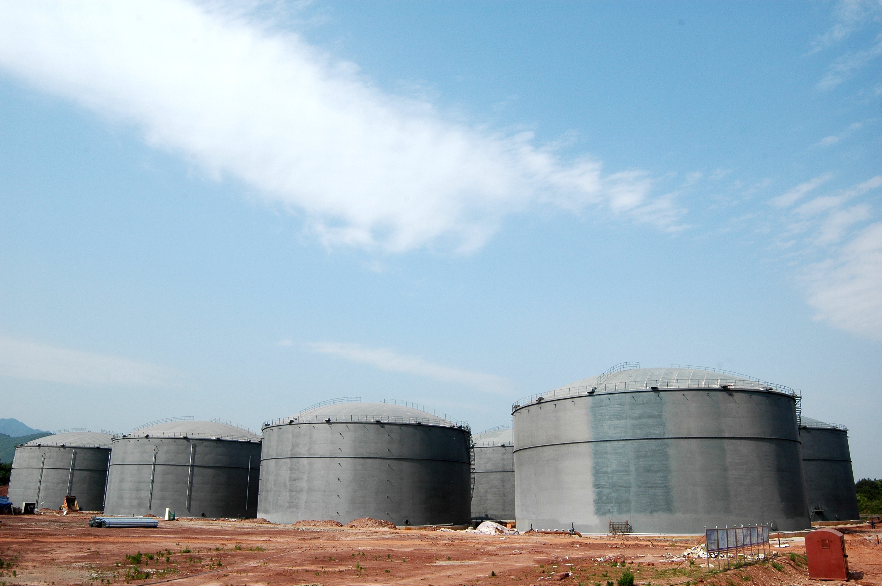 2007年,物产金属公司中标了国家发改委物资储备局的“国家成品油储备库改扩建工程”项目,负责供应安徽、湖北、江西三地成品油储备库改扩建工程所需板材近2万吨。该公司资源部按照工程进展要求,按时保质保量地完成了配供任务,获得了客户的高度评价,为浙江物产在国家物资储备系统赢得了良好声誉,国家物资储备局还为此在安徽359处专门召开了现场会。图为由物产金属配供钢板的安徽359处成品油储备库雄姿。 (叶如海)