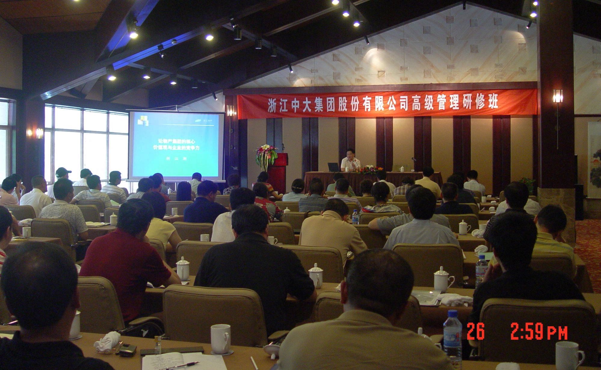 7月25-26日,中大股份公司在杭州清水湾国际大酒店举办了为期2天的高级管理研修班。省物产集团胡江潮董事长应邀到会并作了题为《论物产集团的核心价值观和企业竞争力》的重要报告。