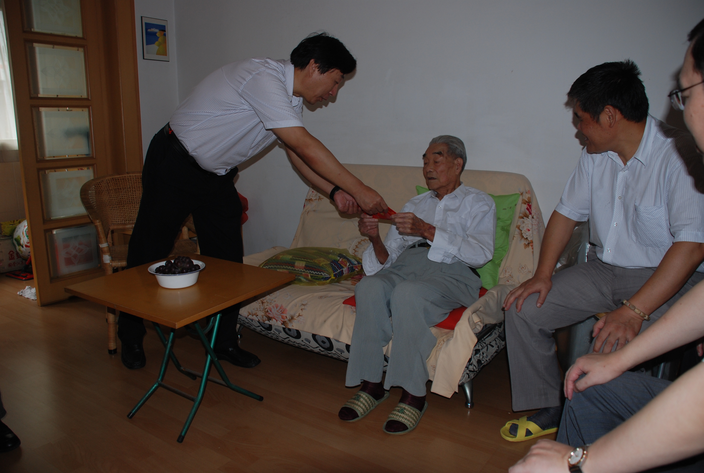 8月上中旬,根据中组部和省委组织部的部署及要求,集团公司和各成员单位领导分别看望和慰问了在建国前入党的老党员,并向他们送去了慰问金。图为集团公司党委副书记、纪委书记隋剑光受党委书记胡江潮同志的委托,看望和慰问物产金属公司的离休老党员。