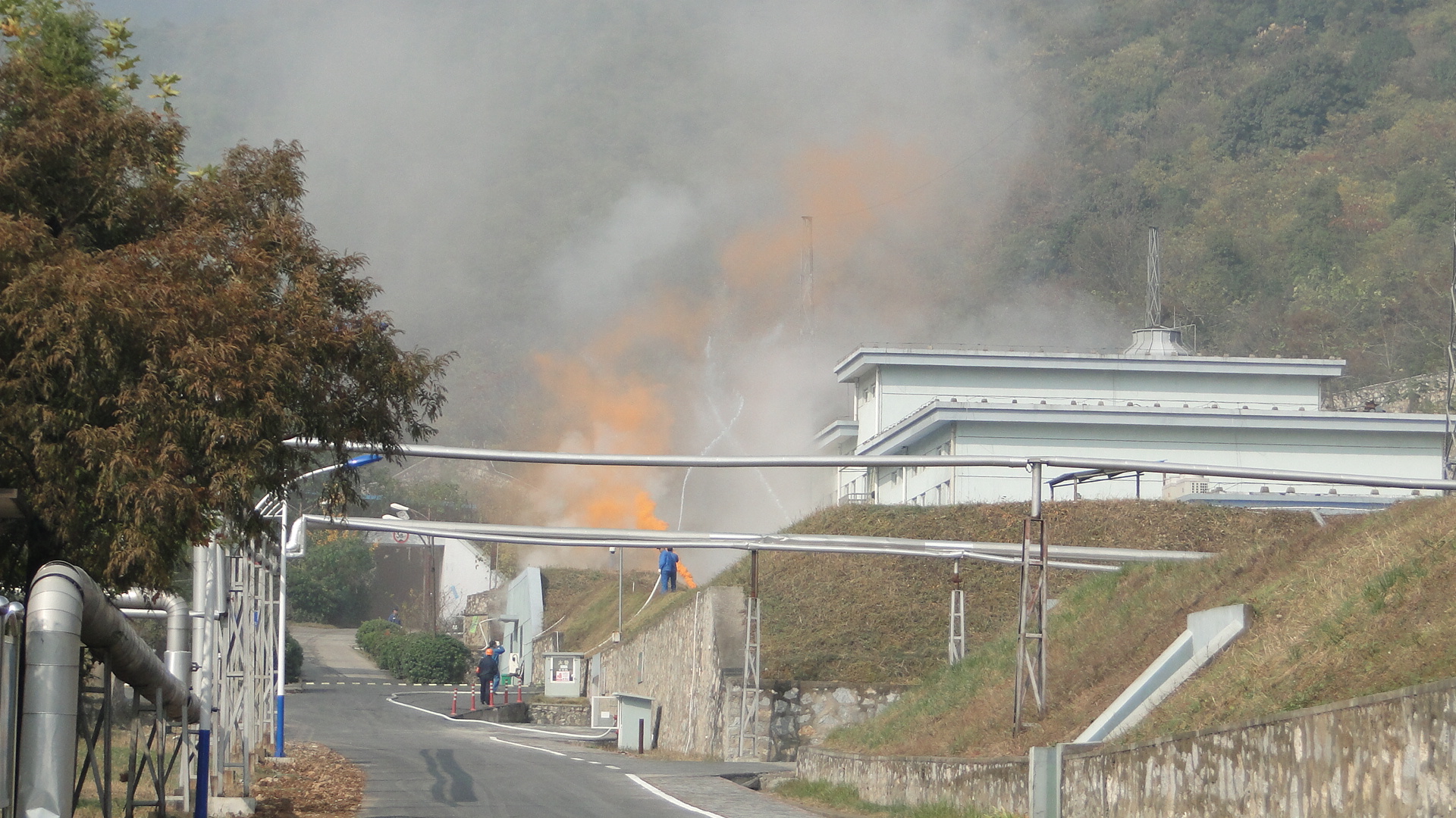 11月17日上午10:30,物产民爆公司所属长鹏化工厂84#车间202#乳化炸药生产线制药工房突然发生“火灾”,火势较大,严重威胁着工房内大量乳化基质和成品乳化炸药,情况十分危急。公司负责人得到事故报告后,立即下令启动公司“事故应急救援预案”,实施应急救援,拉响警报,同时向119、120及当地政府有关部门报警求援……经过13分钟紧急抢险,火势全部扑灭。