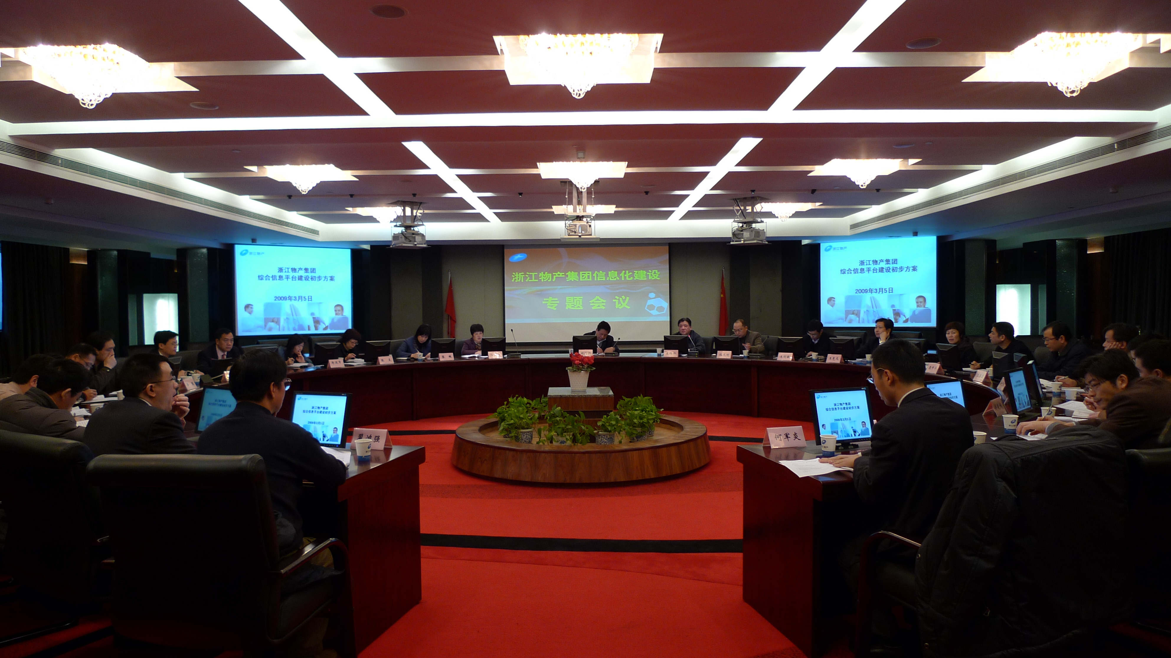 3月5日上午,集团召开了2009年信息化建设专题会议。会议讨论研究了《浙江物产集团信息平台建设初步方案》,明确了“一大平台、两大目标、三项原则、四大重点”这一集团信息化建设总体思路。集团公司董事长胡江潮、总经理兼信息化建设领导小组组长孟伟林,副总经理、信息化建设领导小组副组长陈敏、沈光明以及各成员公司分管领导、信息部门负责人、集团总部各职能部门负责人等参加了会议。