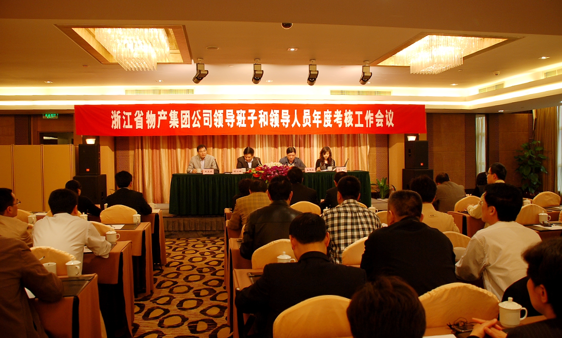 浙江省物产集团公司领导班子及领导人员年度考核工作会议于4月7日下午在杭州国际假日酒店杭州厅举行。集团公司领导班子全体成员、财务总监、集团总部全体在职员工及集团各成员单位高管人员等100余人参加了会议。省委组织部干部三处副处长王玉庆、省国资委企领处副处长蔡亦军到会并对年度考核工作提出要求。胡江潮董事长代表集团公司领导班子在会上作年度工作总结,并进行了个人述职述廉。孟伟林总经理也在会上进行了个人述职。集团领导班子其他成员则按要求作了书面述职述廉。与会人员还对集团领导班子及成员进行了民主测评。(物产报)